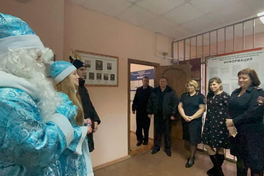 Юные мучкапцы вручили свои презенты сотрудникам местного отдела полиции, ПЧ21, а также одного из магазинов рабочего посёлка Мучкапский.