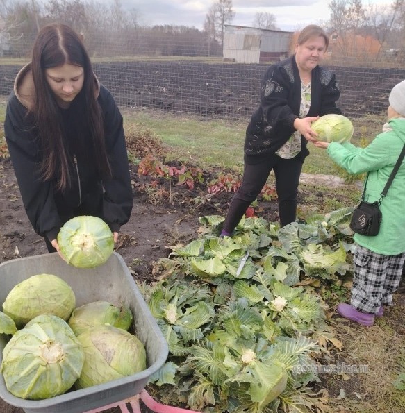 Например, в Чащино дети вместе с родителями в формате семейного выходного посвятили время благоустройству. Елена Митрофанова вместе с дочерями убрали опавшую листву на участке, и собрали урожай капусты.