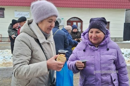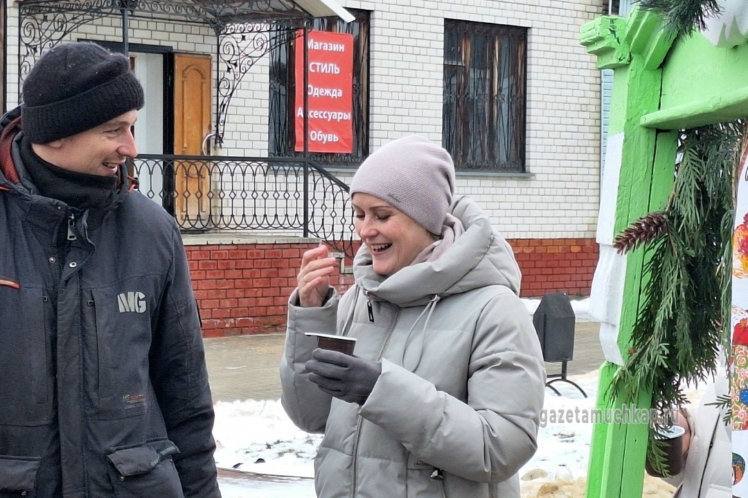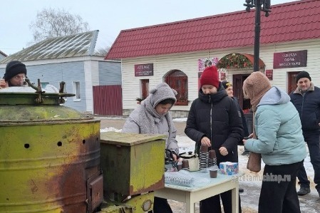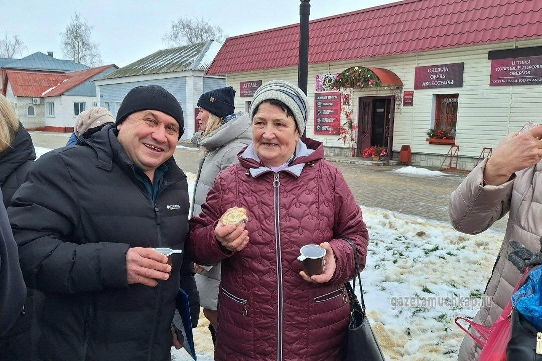 С 10:30 в центре у здания редакции было оживлённо и празднично. Здесь все желающие могли согреться чаем из полевой кухни с вкусной выпечкой и конфетами. А отведав угощение, сделать снимок на память у резного наличника и фотозоны. Звучала музыка, коллектив редакции встречал гостей, принимал поздравления и пожелания, а юные помощницы Маргарита Глушкова, Альбина Александрова и Анастасия Забавина разливали всем чай