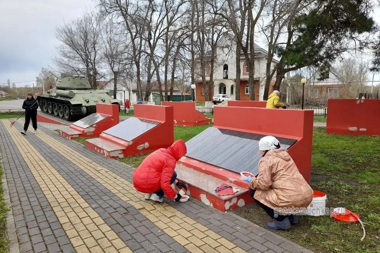 В центре посёлка привели в порядок памятник Неизвестному солдату. Обновили краской элементы монумента, на котором высечены имена всех погибших земляков в годы Великой Отечественной войны. Навели санитарный порядок на захоронении воинов, умерших от ран в Мучкапском госпитале. Привели в порядок территорию мемориального комплекса «Журавли», который встречает гостей при въезде в Мучкап. Рабочие также покрасили въездную стелу.