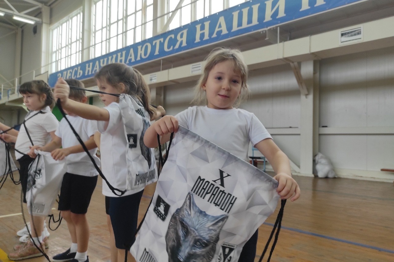 Любая сдача нормативов комплекса начинается с зарядки. Дружно вместе с тренером Олегом Крыжановским размялись и побегали. А волк и заяц, конечно, помогали спортсменам.